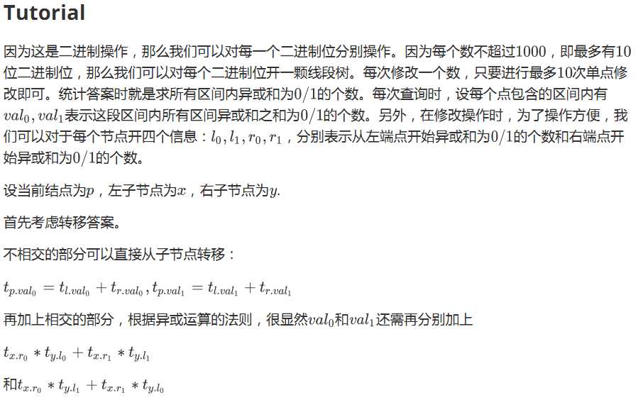 其实更难的应该是每个子区间的异或和之和这个方面。。