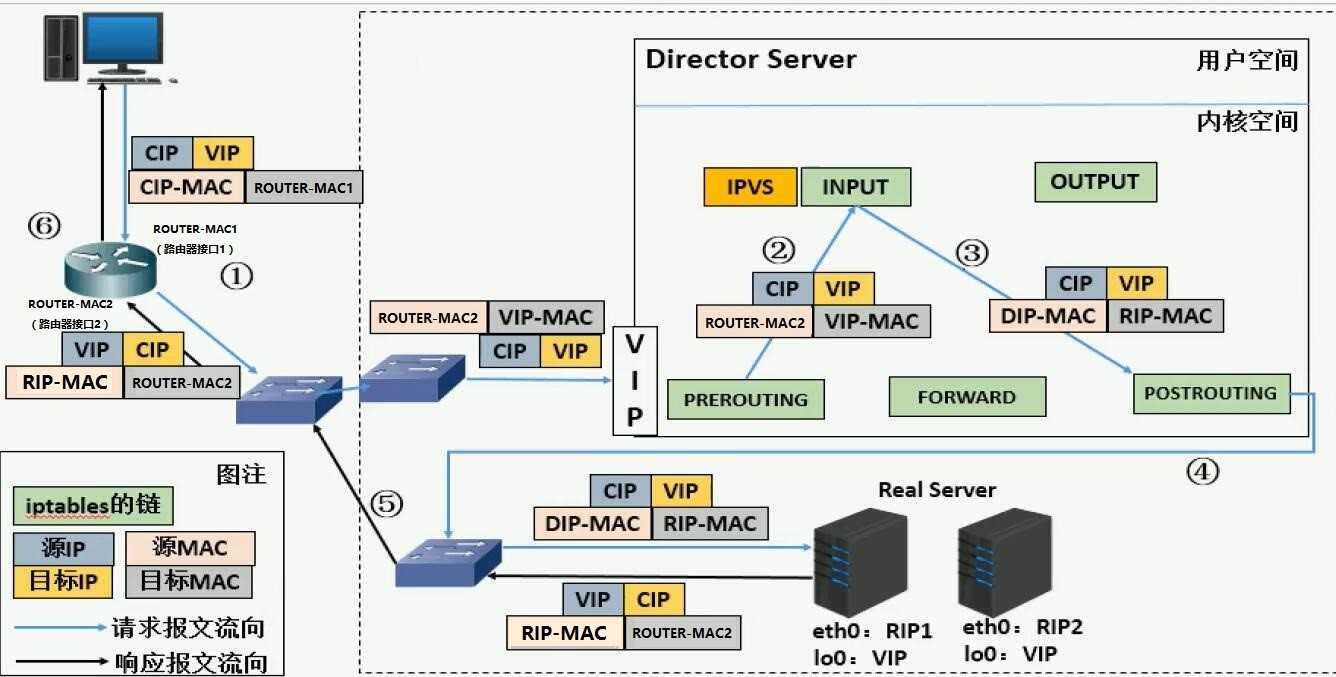 LVS 是内核级的功能,工作在 INPUT 链的位置,将发往 INPUT 的流量进行处理