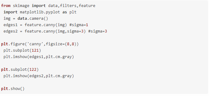 函数格式:skimage.feature.canny(image,sigma=1.0)