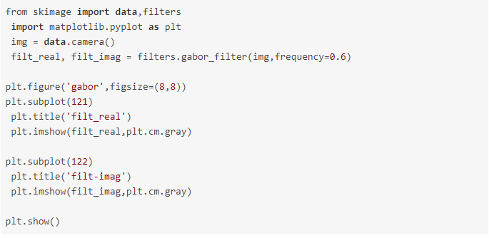 函数调用格式:skimage.filters.gabor_filter(image, frequency)