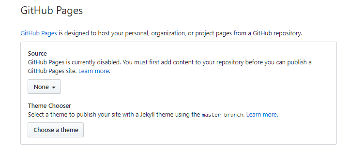 创建仓库以后点击settings,找到GitHub Pages一列,点击choose a