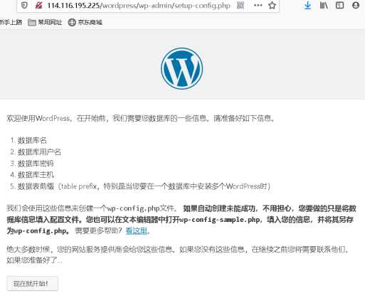 在浏览器输入http://EC2_IP/wordpress,即可访问WordPress欢迎页面