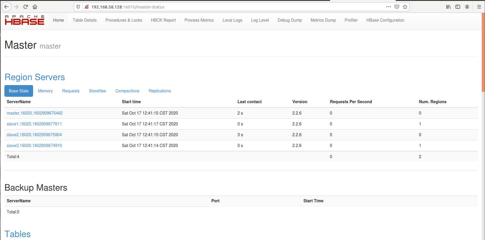 SLF4J: Class path contains multiple SLF4J bindings. SLF4J: Found binding in [jar:file:/usr/local/hadoop/share/hadoop/common/lib/slf4j-log4j12-1.7.25.jar!/org/slf4j/impl/StaticLoggerBinder.class] SLF4J: Found binding in [jar:file:/usr/local/Hbase/lib/client-facing-thirdparty/slf4j-log4j12-1.7.25.jar!/org/slf4j/impl/StaticLoggerBinder.class] SLF4J: See http://www.slf4j.org/codes.html#multiple_bindings for an explanation. SLF4J: Actual binding is of type [org.slf4j.impl.Log4jLoggerFactory] running master, logging to /usr/local/Hbase/bin/../logs/hbase-hadoop-master-master.out slave2: running regionserver, logging to /usr/local/Hbase/bin/../logs/hbase-hadoop-regionserver-slave2.out slave3: running regionserver, logging to /usr/local/Hbase/bin/../logs/hbase-hadoop-regionserver-slave3.out slave1: running regionserver, logging to /usr/local/Hbase/bin/../logs/hbase-hadoop-regionserver-slave1.out master: running regionserver, logging to /usr/local/Hbase/bin/../logs/hbase-hadoop-regionserver-master.out