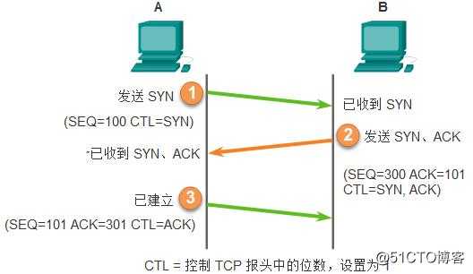 ? 主机跟踪会话过程中的每个数据段,并使用 TCP 报头信息交换已接收数据的相关信息。 TCP 是全双工协议,每个连接都代表两个单向通信数据流戒会话。若要建立连接,主机应执行三次握手。 TCP 报头中的控制位指出了连接的进度和状态。 三次握手:
