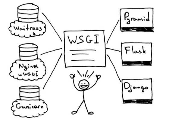 https://blog.csdn.net/li_101357/article/details/52748686和https://my.oschina.net/crooner/blog/609030, 这些网页讲wsgi讲的不错。