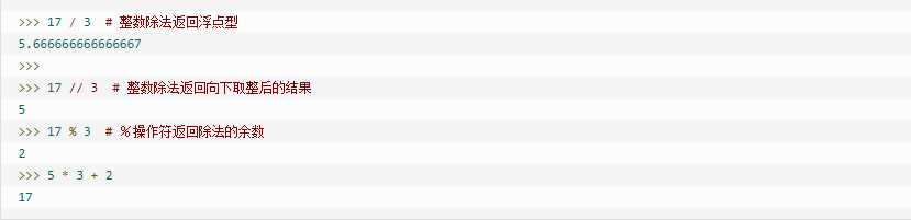 在整数除法中,除法 / 总是返回一个浮点数,如果只想得到整数的结果,丢弃可能的分数部分,可以使用运算符 // :