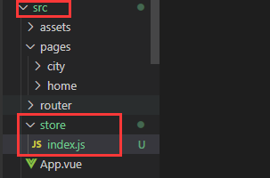 2.在src目录下新建文件夹store,然后在store文件夹新建index.js,因为vuex东西比较复杂,所以要新建一个单独的文件夹