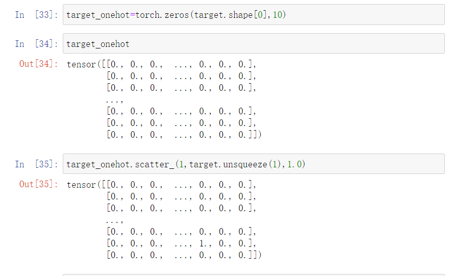 当时有疑惑为什么要用unsqueeze来填充维度,本质是因为one-hot是填充列元素,也是第二维,所以需要坐标指示,而利用unsqueeze可以直接选取第二维中的值作为填充的索引,直接填入即可;