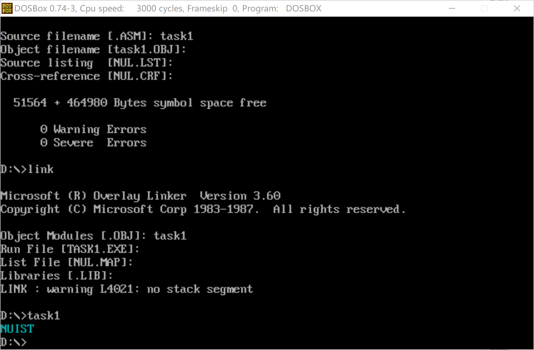 这里我将db 5 dup(2)改为db 5 dup(3)可见NUIST从绿色变为如图所示的颜色,由此可知字面意思的插入数字实际是更改了字母颜色