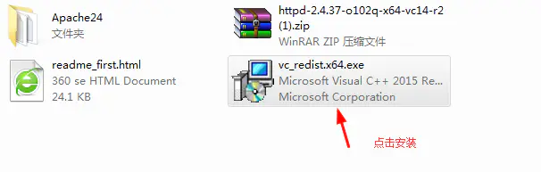 注意--安装apache要在vc运行库里运行,如果电脑上没有安装需要下载方法如下