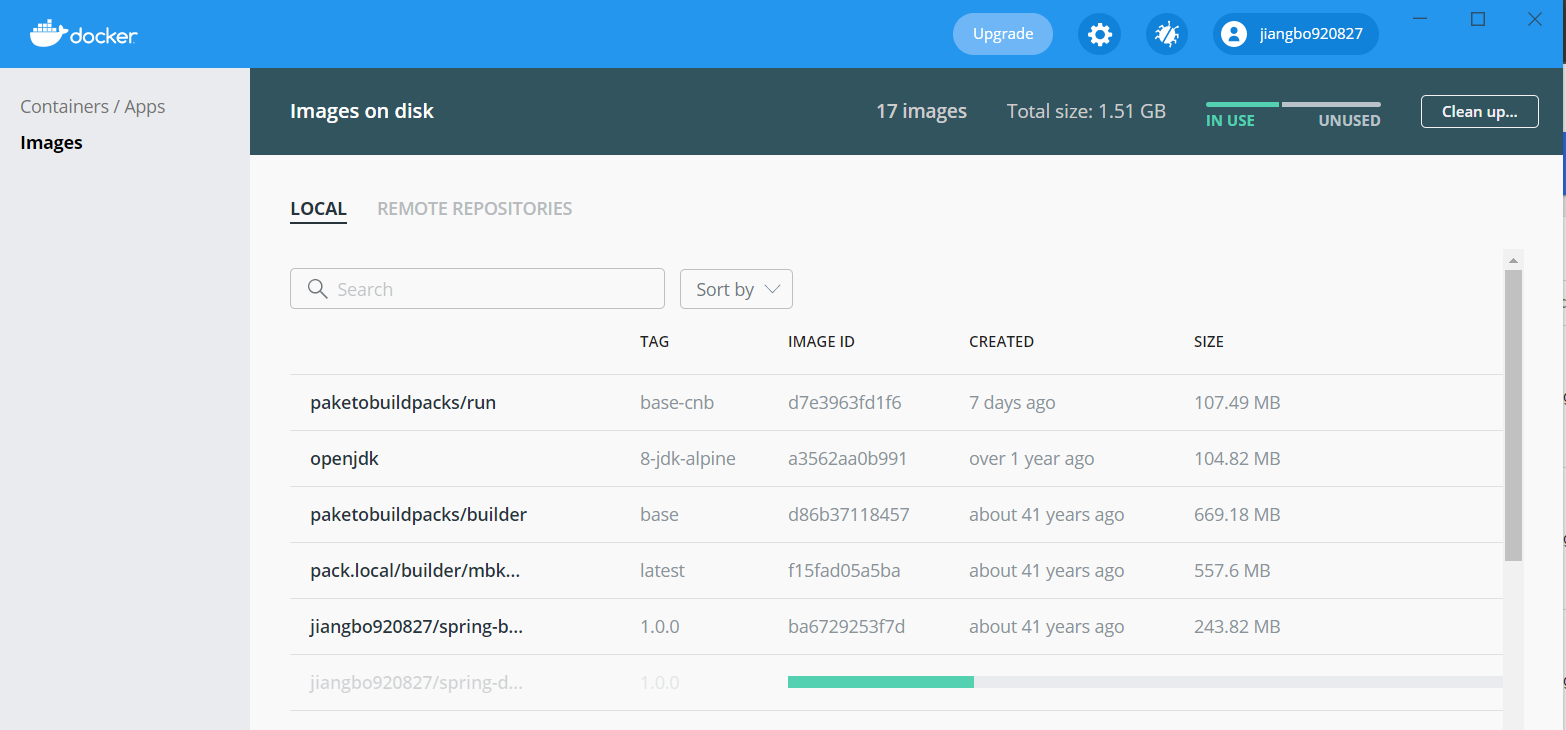 PS C:\Users\JiangBo> docker image ls jiangbo920827/spring-docker