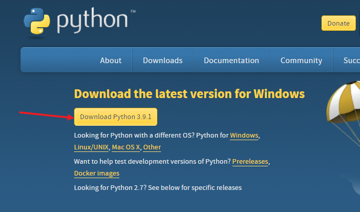 3.点击Download Python 3.9.1(深黄色的圆角矩形),及可自动下载适合的版本。