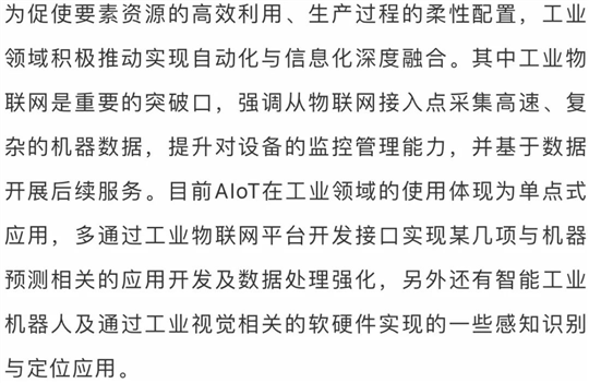 目前AIoT体现为单点式应用,多通过工业物联网平台实现