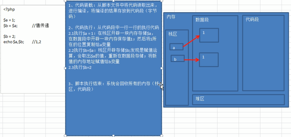 2、引用传递:将变量值的保存的地址传递给另一变量,两个变量指向同一内存空间,引用传递符号 &