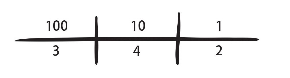 理解二进制较好的一种方式,就是揭示十进制的数字转换为二进制数字的过程。接下来,我们将十进制数字的排放位置以分栏形式表示,先是个位栏,再是十位栏,然后是百位栏,依次排列。从右至左每移动一栏就意味着是前一栏的10倍(这就是我们所熟知的以10为基准的数字体系或者叫十进制体系):