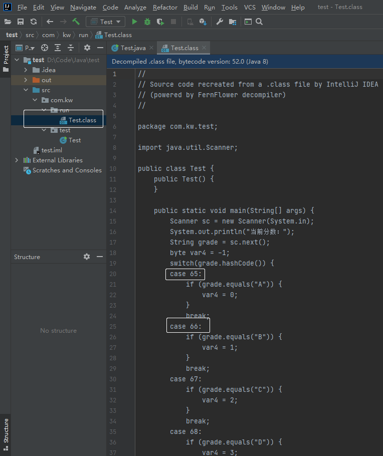 对于字符串的实现,我们可以通过反编译的手段看下源码上Java是如何实现字符串的case匹配的: