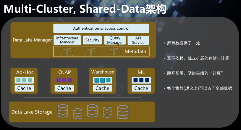 MySQL CDC connector 非常受用户的欢迎,尤其是结合 OLAP 引擎,可以快速构建实时 OLAP 架构。实时 OLAP 架构的一个特点就是将数据库数据同步到 OLAP 中做即席查询,这样就无需离线数仓了。