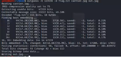 (2) 提取文件 outguess -k 密钥 -r 加密后的图片 输出文件名