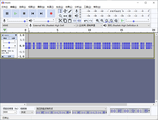 将单声道波形提取出来,接近1的变成1 ,接近-1的变成0,得到二进制,并转化为ascii