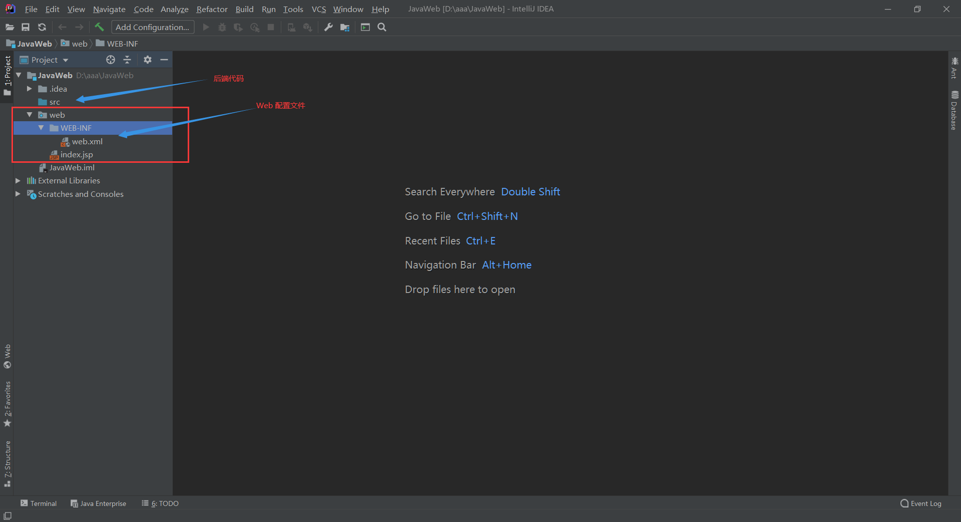 在WEB-INF目录下右键选择NEW->Directory,创建class和lib两个目录。