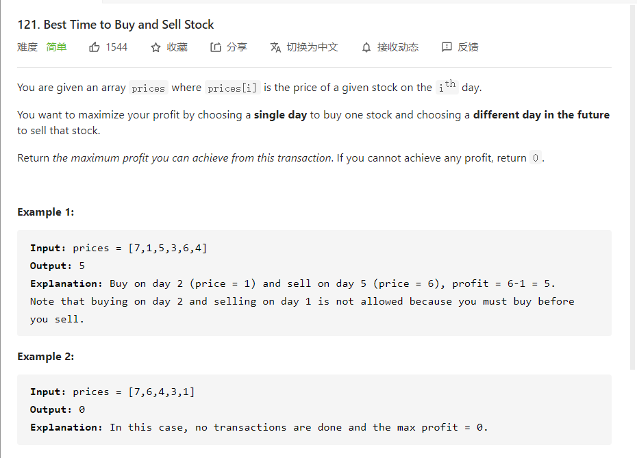 Best Time to Buy and Sell Stock