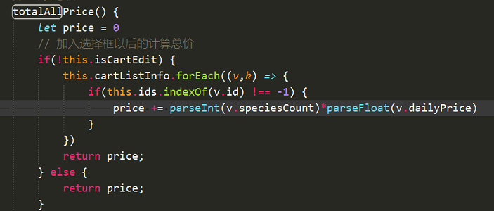 price += parseInt(v.speciesCount)*parseFloat(v.dailyPrice)