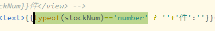 <view class="stockNum">库存:{{stockAmount!=‘‘?stockAmount:stockNum}} <text>{{typeof(stockNum)==‘number‘?‘‘+‘件‘:‘‘}}</text> </view>