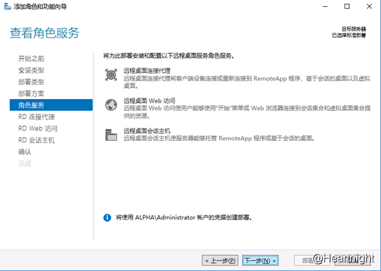 上图会告知步署的基础的三个角色,在接下来的操作中,会优先在向导中选择三台机器来完成角色安装,其余的机器在完成安装之后在VDI的操作界面中安装,选“下一步”。