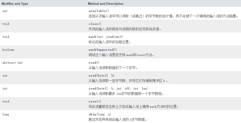 public int read(byte[] b); 从流中读取多个字节,将读到内容存入b数组,返回实际读到的字节数;如果达到文件的尾部,则返回-1