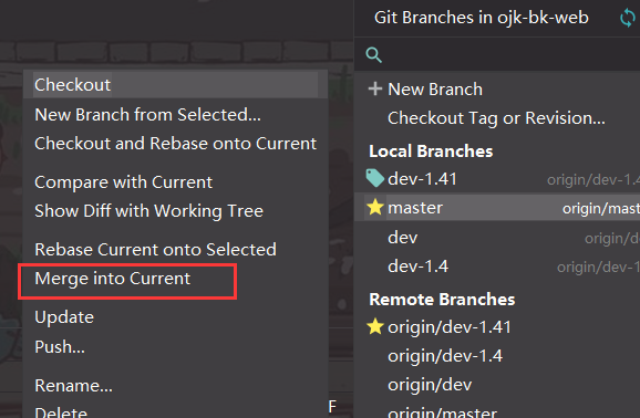 点击单个文件右键, 选中对比的分支进行对比