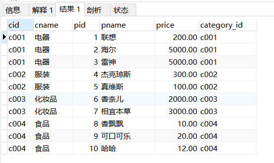 select * from category,product where cid=category_id