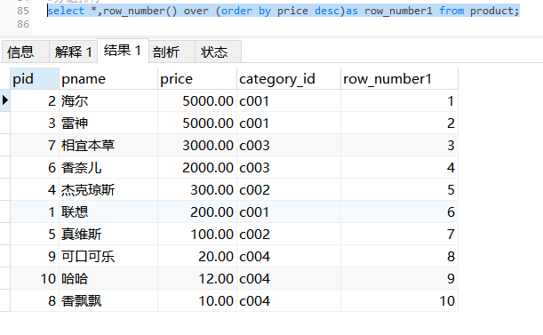row_number:不管排名是否有相同的都按照1.2.3.4........n