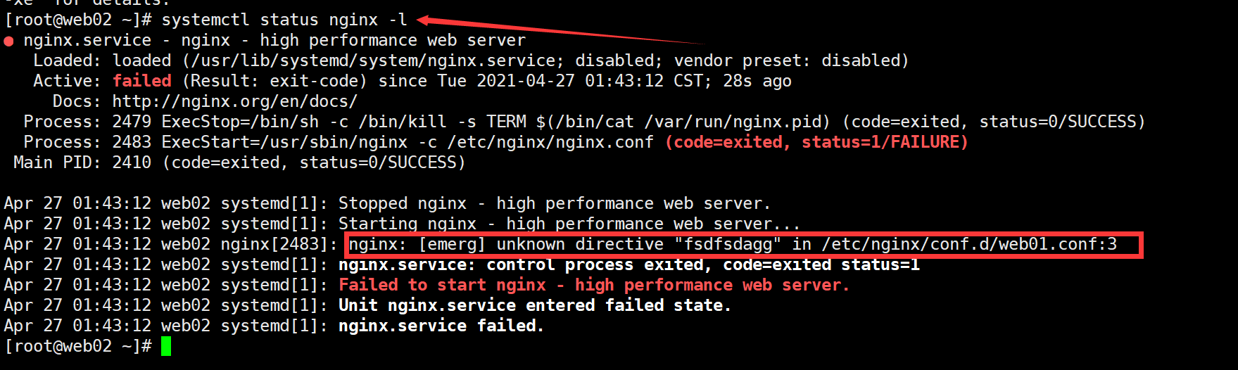 [root@web02 ~]# systemctl status nginx -l