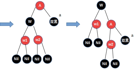 2.5 az是黑色节点,az的兄弟节点W是黑色,W的左儿子是红色,右儿子是黑色