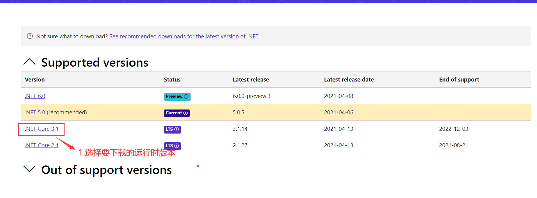 1.官网地址https://dotnet.microsoft.com/download/dotnet,选择要下载的运行时版本(.Net Core 3.1),到微软官网下载.Net Core 运行时时程序,