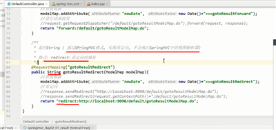 当方法返回一个字符串的时候(”result“),直接调用视图解析器中,跳转到jsp页面