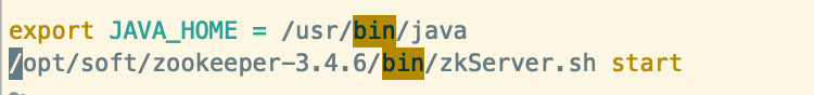 export JAVA_HOME=/usr/bin/java/opt/soft/zookeeper-3.4.6/bin/zkServer.sh start