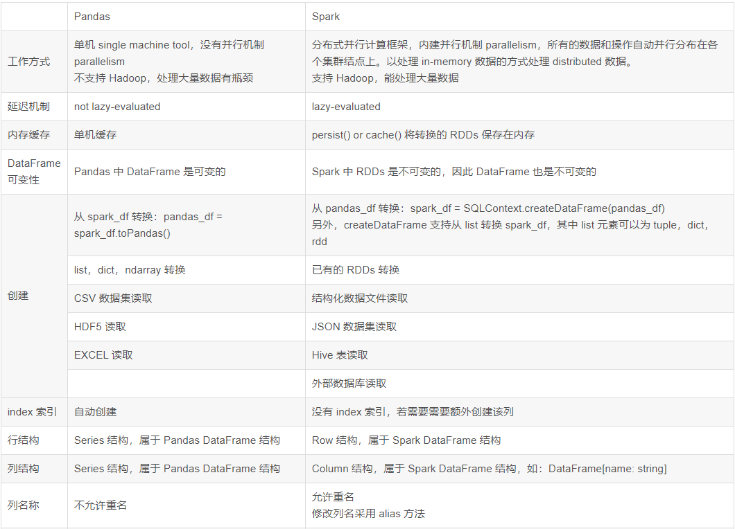 4.观察Spark的DataFrame与Python pandas的DataFrame有什么异同?
