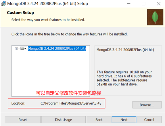 下载完成mongodb-win32-x86_64-2008plus-3.4.24-signed.msi文件后,点击next安装即可。