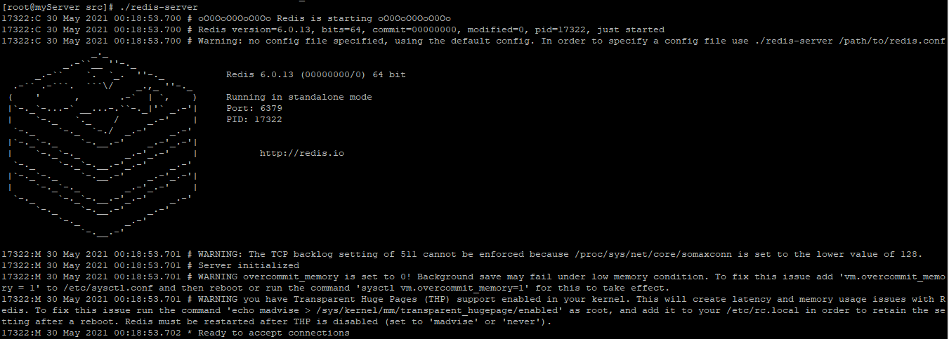 ./redis-server conf/redis.conf (以指定的配置文件启动Redis,测试其是否变成后台运行,成功的话是没有任何提示的)
