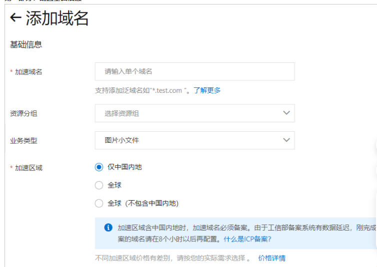 1、填写加速域名,假设加速域名叫:ggg2021.yxxx.com.cn(名字随意)