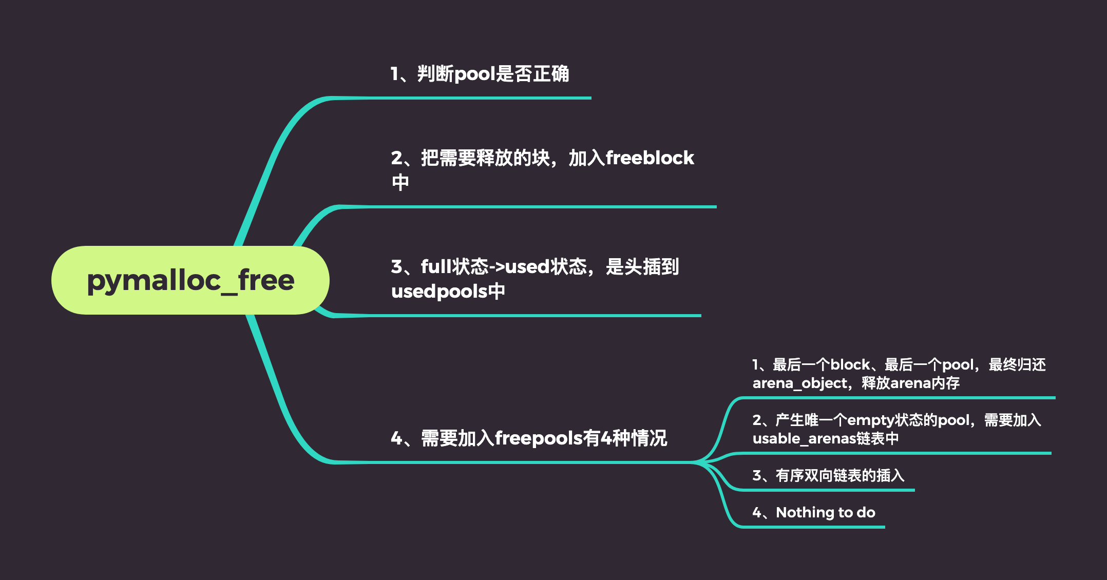 Python的大部分基础类引入了缓存池的机制用于管理小块内存的申请和释放,提供pymalloc_alloc、pymalloc_realloc、pymalloc_free三个接口