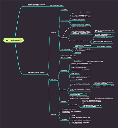 小于512字节的内存申请由Python的低级分配器接管(空白内存,raw memory),做了3级层次的划分,依次为block、pool、arena