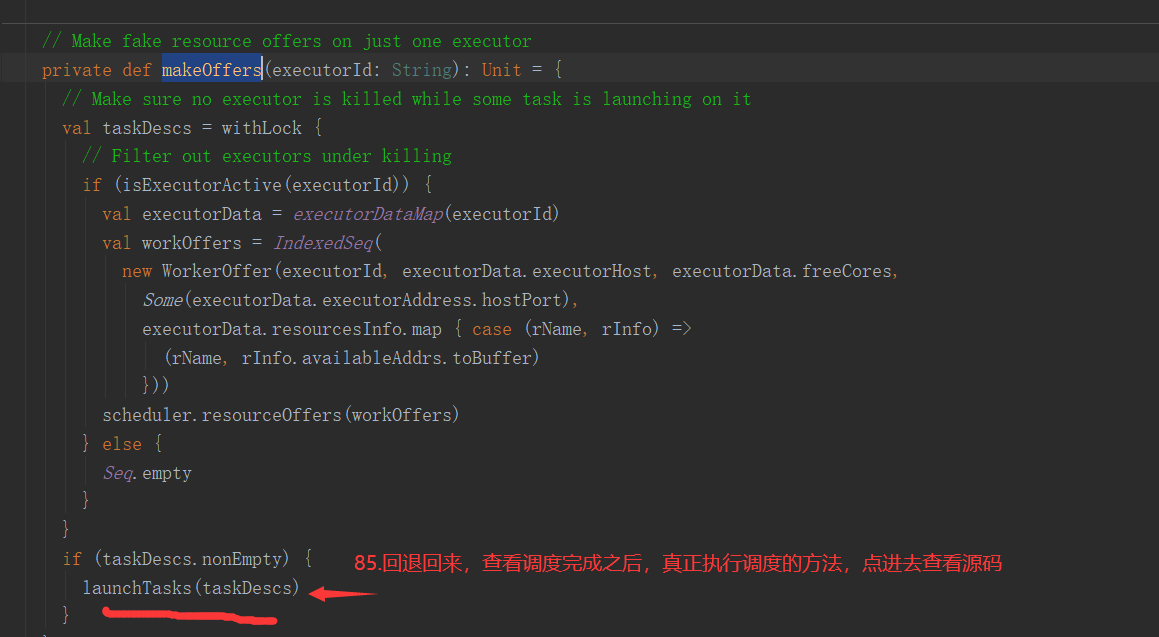 private[spark] class FIFOSchedulingAlgorithm extends SchedulingAlgorithm { // TaskSetManager: Schedulable override def comparator(s1: Schedulable, s2: Schedulable): Boolean = { val priority1 = s1.priority val priority2 = s2.priority /* 根据 (priority1 - priority2) 的结果,进行返回 结果为负数,返回 -1 结果为0,返回0 结果为正数,返回 1 */ var res = math.signum(priority1 - priority2) if (res == 0) { // stageId 小的是靠前的阶段 val stageId1 = s1.stageId val stageId2 = s2.stageId res = math.signum(stageId1 - stageId2) } res < 0 } }