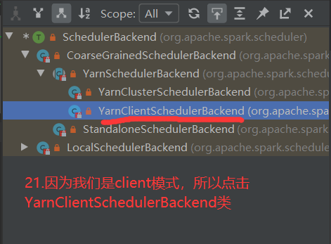 def initialize(backend: SchedulerBackend): Unit = { this.backend = backend schedulableBuilder = { schedulingMode match { // 由调度模式决定 取决于spark.scheduler.mode,默认为FIFO case SchedulingMode.FIFO => new FIFOSchedulableBuilder(rootPool) case SchedulingMode.FAIR => new FairSchedulableBuilder(rootPool, conf) case _ => throw new IllegalArgumentException(s"Unsupported $SCHEDULER_MODE_PROPERTY: " + s"$schedulingMode") } } schedulableBuilder.buildPools() }