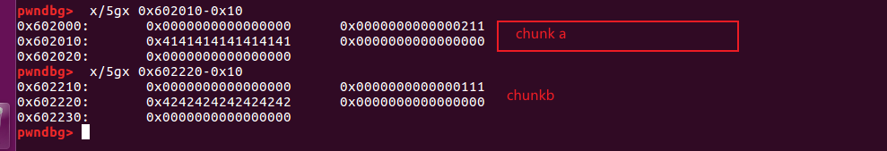 fprintf(stderr,"The second one:%p\n",&fake_chunks[4]);