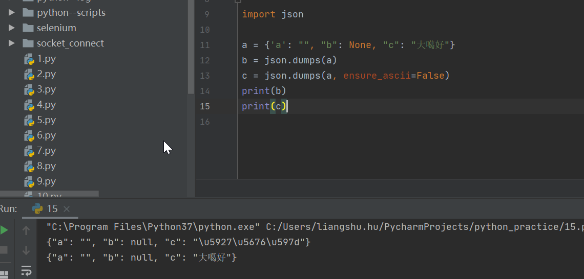 python之反序列化json.dumps()函数输出json格式,使用indent参数对输出进行json格式优化,使用ensure_ascii参数对中文输入的支持