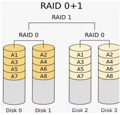 //创建RAID 10 (先做镜像,再做条带) mdadm -Cv /dev/md0 -l1 -n2 /dev/sd[bc]1 mdadm -Cv /dev/md1 -l1 -n2 /dev/sd[de]1 mdadm -Cv /dev/md10 -l0 -n2 /dev/md0 /dev/md1
