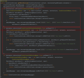 outcomes[i] = getOutcome(onSingleCandidateTypes, ConditionalOnSingleCandidate.class);