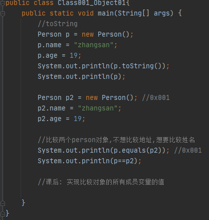 (5)equals 比较两个对象是否相等,Object 类中equals默认比较 : 对象的地址,如果不想比较对象的地址,想要比较所有成员变量的值,可以在子类中重写equals方法